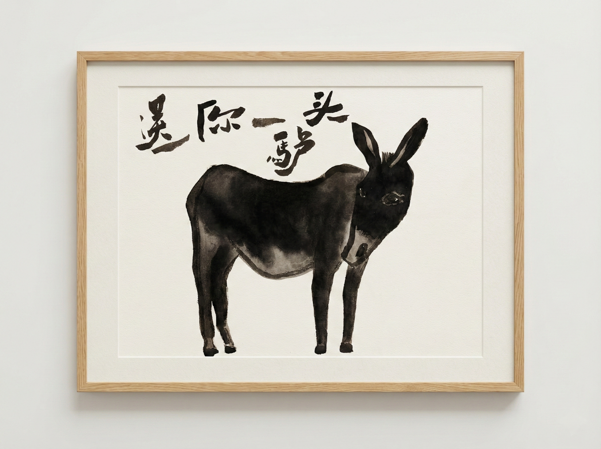 Rather than depicting movement or labor, the donkey is shown at rest — grounded, calm, and complete in itself.